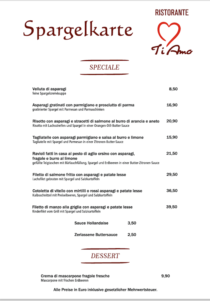 Aktuell beginnt die Spargel-Saison. Das Ti Amo lädt zu einer Auswahl italienischer Spargel-Gerichte ein, die es auf seiner Spargel-Karte präsentiert.